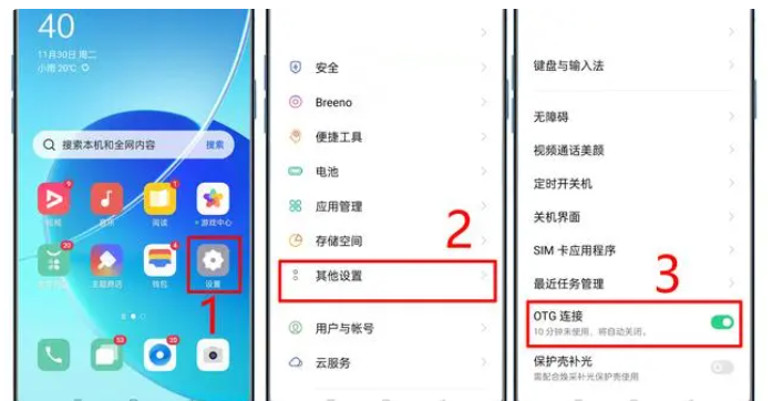 插上OTG轉(zhuǎn)換頭后設置: