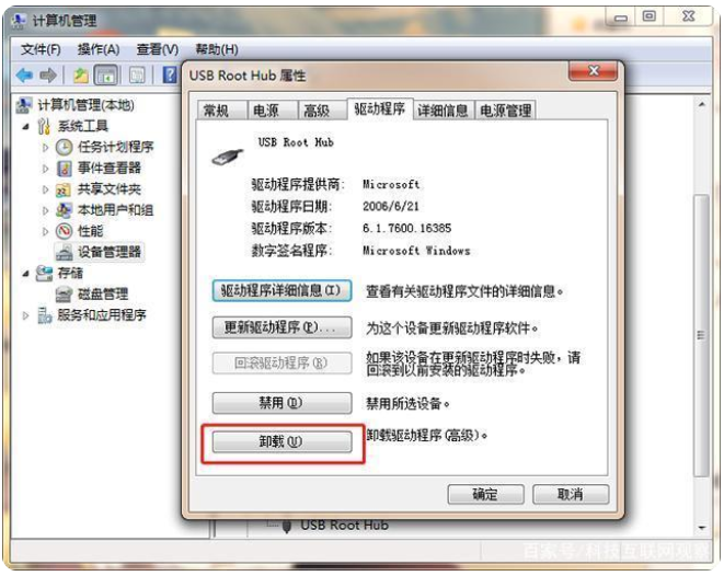 進(jìn)入計(jì)算機(jī)管理中的設(shè)備管理器頁(yè)面卸載USB設(shè)備