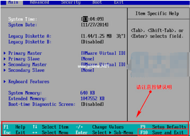 1、進入bios界面設置,記住底部快捷鍵操作。
