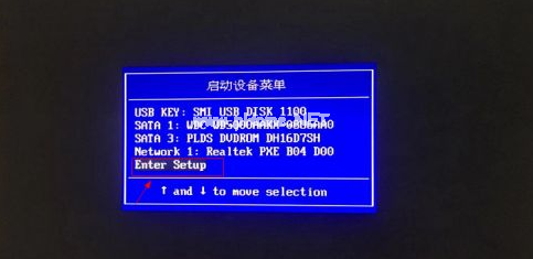 2、在啟動設備菜單窗口中,選擇“ENTER Setup”進行BIOS設置。