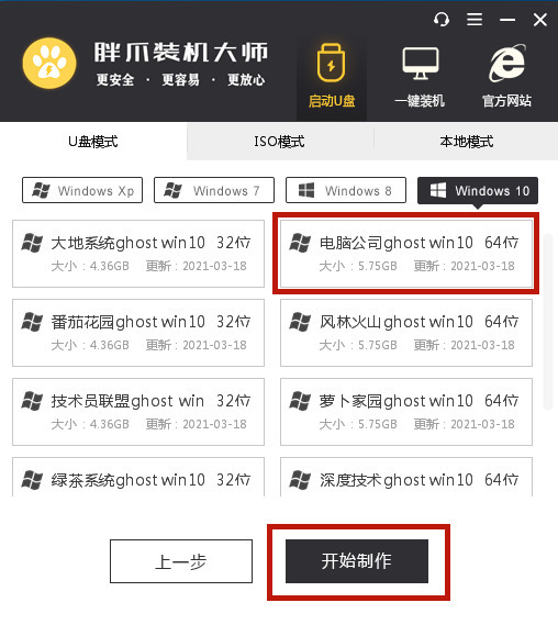 3.在這里我們選中自己想要下載的windows10系統(tǒng),再點擊下方的“開始制作”,然后在警告頁面點擊“確定”;、
