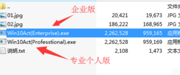 2、下載后用winrar解壓,從其目錄中可以找到兩個版本的激活工具,其中“Win10Act(Enterprise).exe”適當激活企業(yè)版Win10系統(tǒng),而“Win10Act(Professtional).exe”將用于激活專業(yè)個人版Win10系統(tǒng)。