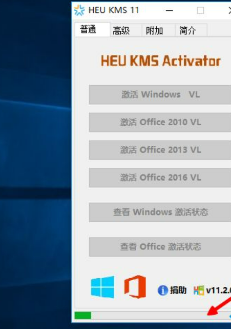 2、開始執(zhí)行kms激活win10過程,界面變成灰色,底部有個(gè)綠色進(jìn)度條,等待即可;