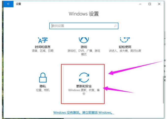 2.然后點擊“更新和安全”;