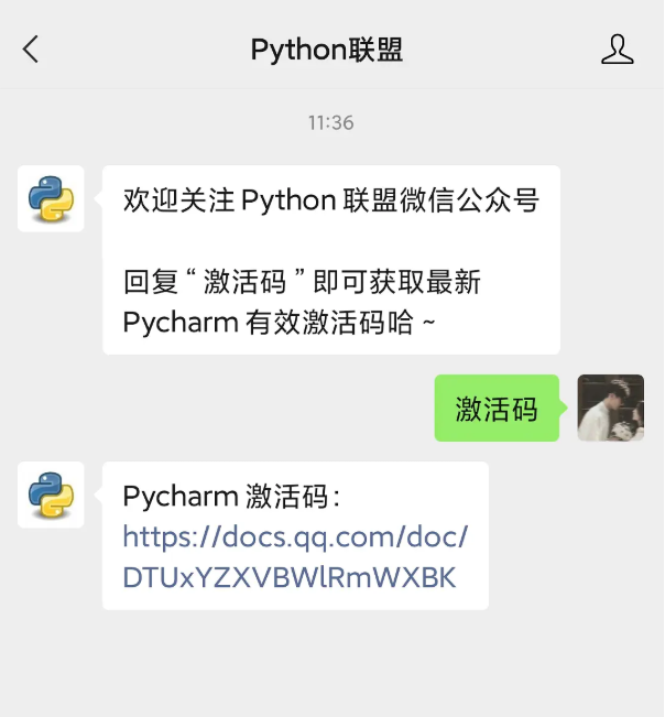 7.完成上述操作后,我們關(guān)注公眾號Python聯(lián)盟并在其中發(fā)送激活碼,即可獲取當(dāng)前最新有效的該軟件的激活碼用于軟件的激活。