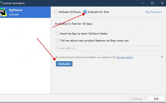 6.進(jìn)入注冊的頁面,我們選擇evaluateforfree這個選項,點擊evaluate就能夠使用該軟件啦。