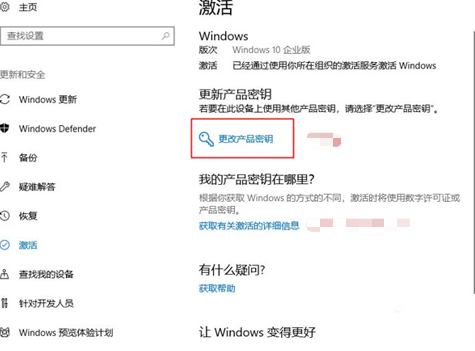 依次進入win10系統(tǒng)桌面的開始菜單—設(shè)置—更新和安全—激活—更改產(chǎn)品密鑰—輸入產(chǎn)品密鑰—激活。