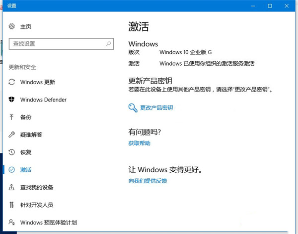 3、打開“設(shè)置-更新和安全-激活”,就可以看到win10以及完成激活。