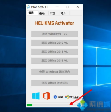 2. 點(diǎn)擊后軟件開始執(zhí)行kms激活win10過程,這時(shí)界面變成灰色,等待底部的綠色進(jìn)度條加載完畢即可。