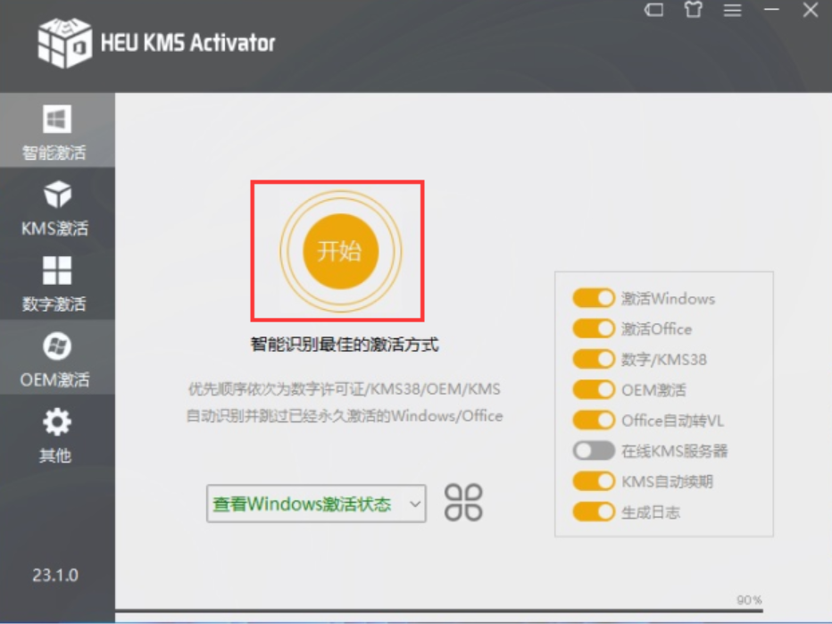 2、打開(kāi)軟件后點(diǎn)擊左側(cè)智能激活選項(xiàng),再點(diǎn)擊開(kāi)始進(jìn)行激活,激活的過(guò)程等待即可,無(wú)需任何操作。