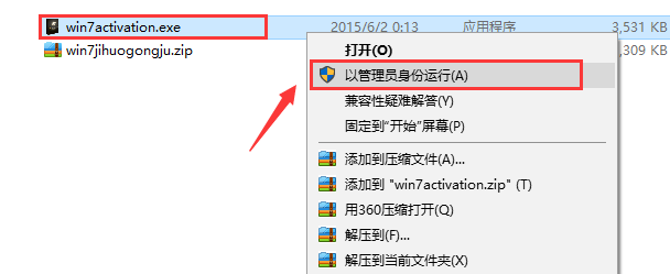 1、直接瀏覽器上搜索找到合適的下載地址,下載后可以解壓得到win7activation.exe的文件。鼠標右鍵點擊exe文件,以管理員身份運行。