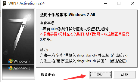 2、進入程序,直接點擊激活選項,軟件便會自動開始激活win7系統。。
