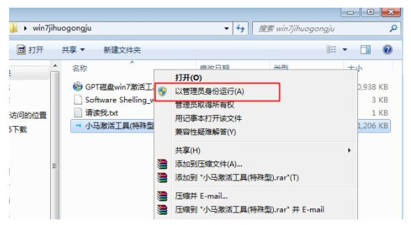 2、然后打開解壓后的文件夾,選中并右擊小馬激活工具,選擇【以管理員身份運(yùn)行】。