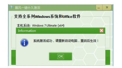 4、激活后點(diǎn)擊ok重啟系統(tǒng)。