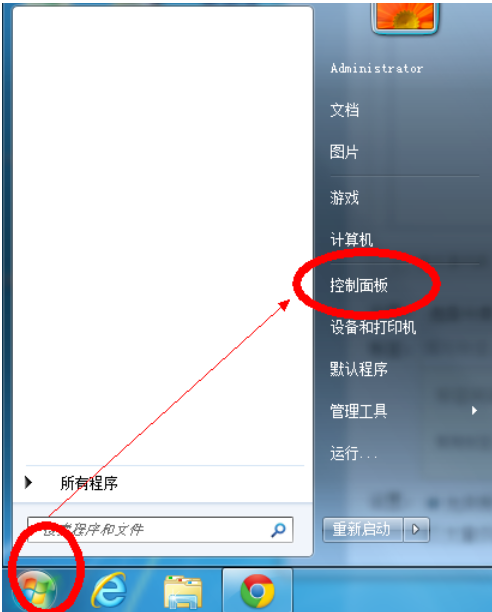 1、點(diǎn)擊win7系統(tǒng)的開(kāi)始菜單→控制面板進(jìn)入。