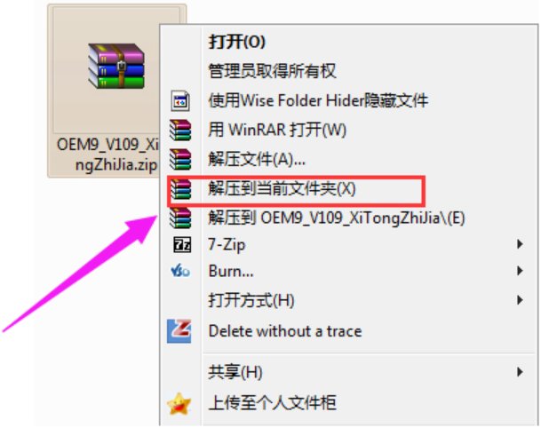 1、自行在電腦上搜索并下載小馬激活工具到電腦磁盤,然后鼠標(biāo)右擊下載好的安裝包,選擇解壓到當(dāng)前文件夾。