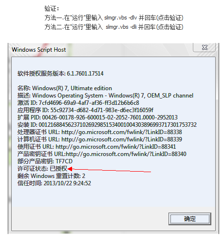 6、電腦重啟,進入win7系統(tǒng)檢查激活狀態(tài),可以參照下圖方式進行驗證,得到激活狀態(tài)驗證。