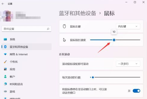 3.點擊鼠標下拉動滑塊即可調(diào)整鼠標靈敏度。