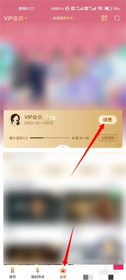 2、當我們來到會員頁面時,就點擊續(xù)費的這個選項。