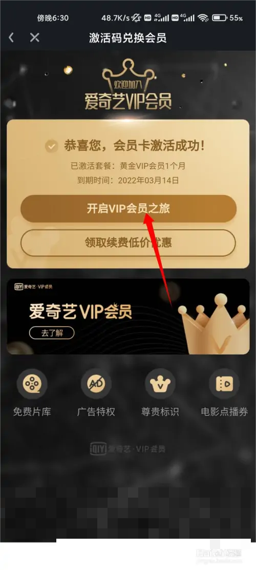 6、最后激活成功我們就點擊開啟VIP會員之旅的選項,就可刷新會員日期。