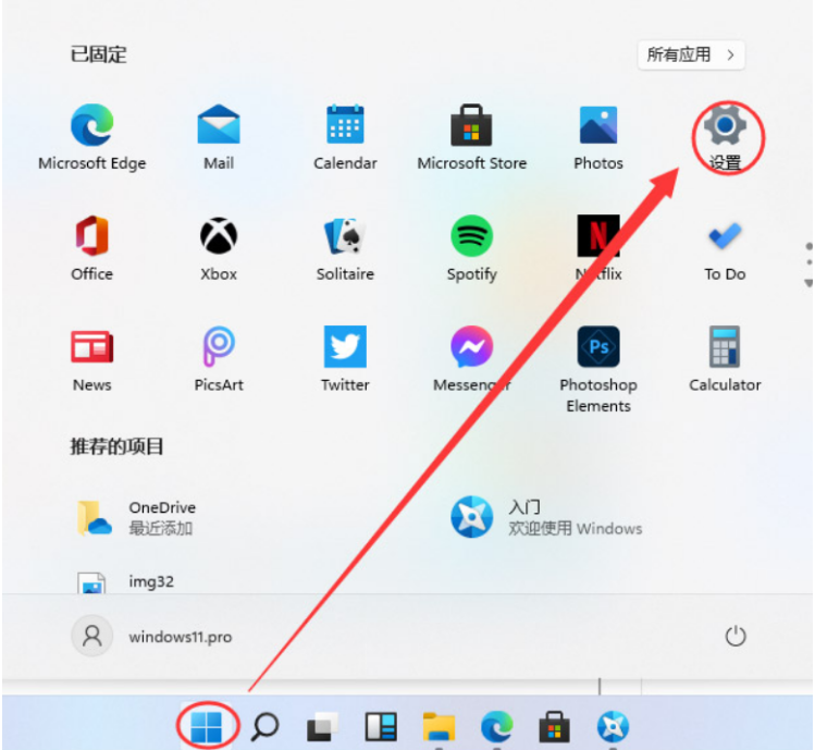 1、首先我們點(diǎn)擊打開win11系統(tǒng)桌面,點(diǎn)擊“設(shè)置”選項(xiàng)。
