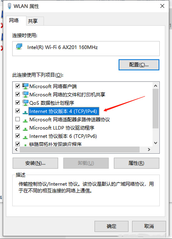 4.點擊版本4,選擇屬性,進行配置; (需要勾選“自動獲取IP地址”,然后在下圖中填寫首選和備用dns服務(wù)器)。