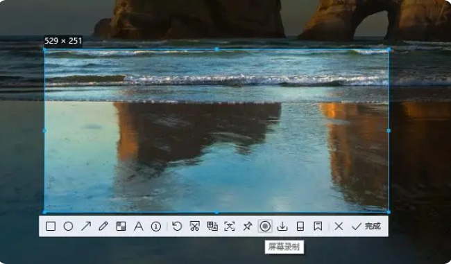 3、還有一個方法可以通過qq自帶的截圖功能來錄屏。按下qq截圖的快捷鍵后,我們可以看到如下界面的屏幕錄制選項,點擊就哭呀開始錄制排名了。