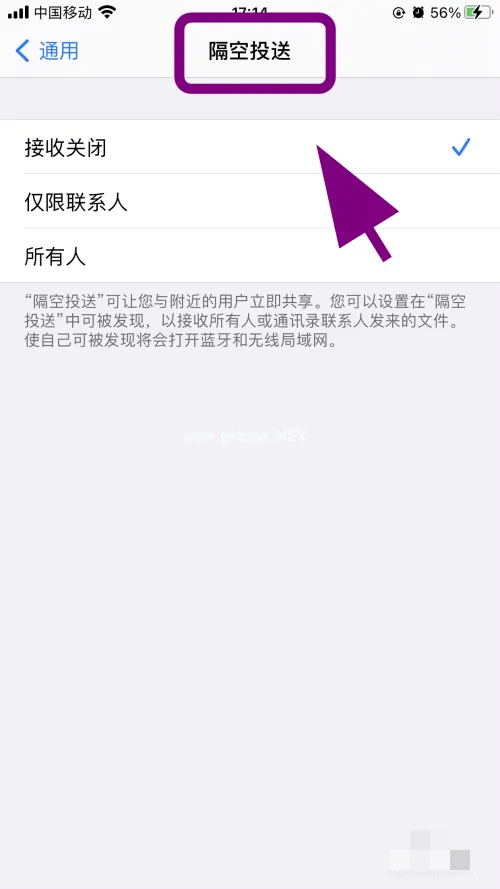 4、進(jìn)入AirDrop發(fā)送設(shè)置選項(xiàng)菜單;