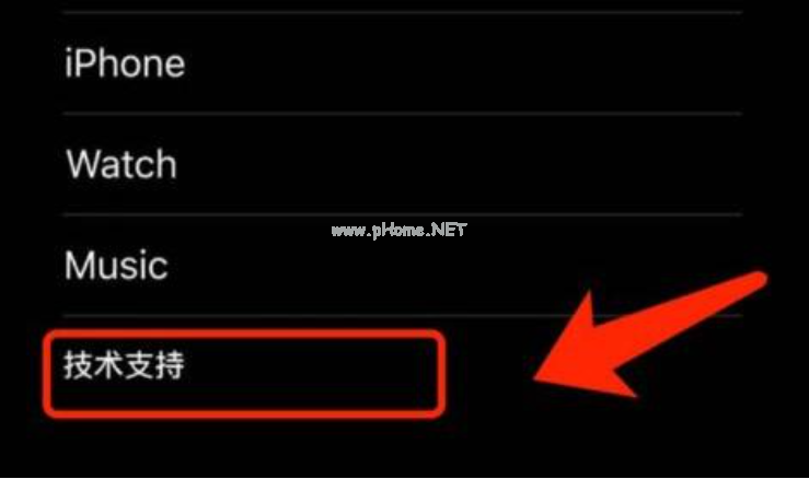 5、在下拉菜單界面里打開“技術(shù)支持”。