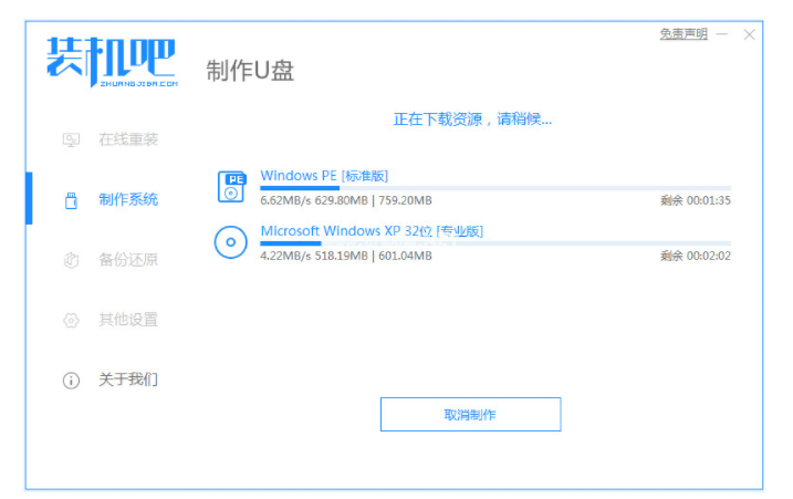 1、下載安裝一個裝機(jī)吧一鍵重裝系統(tǒng)軟件并打開。插入U盤。選擇制作系統(tǒng),在制作U盤中選擇您的U盤,鼠標(biāo)點擊開始制作。