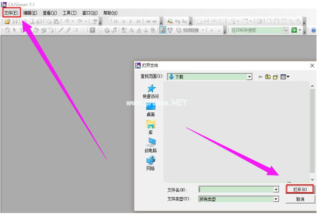 3、點擊左上的“文件”,點擊打開,找到需要打開的CAJ文件,鼠標點擊對話框里的“打開”即可。