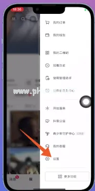 3、在打開的隱藏菜單欄中 ,選擇下方的【設(shè)置】并點擊。