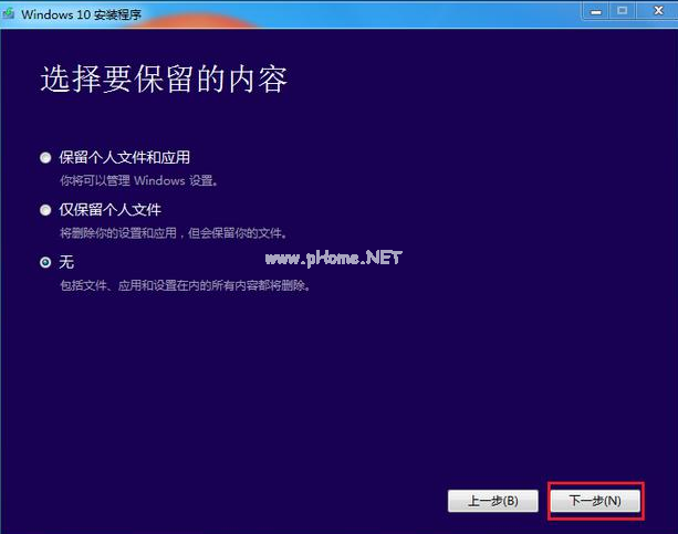 8.如果我們這時沒有系統(tǒng)文件需要保留的話,點擊【無】,進(jìn)入到下一步的操作。