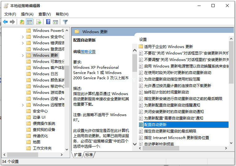 2、點(diǎn)擊依次展開【計(jì)算機(jī)配置 - 管理模板 - Windows 組件 - Windows 更新】,在右邊找到【配置自動(dòng)更新】選項(xiàng)雙擊進(jìn)入。