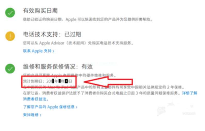 4、在維修和服務保修情況下可以查看到預計到期日。
