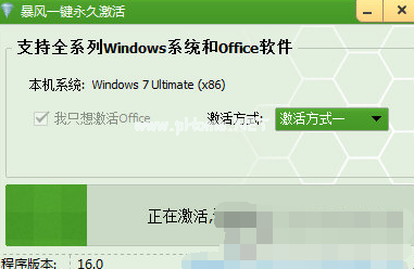 3、暴風(fēng)激活工具開始激活系統(tǒng)或Office軟件。