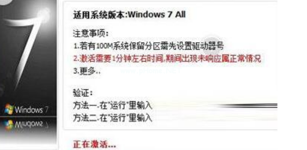 2、進(jìn)入到win7激活工具軟件主界面,在界面中有注意事項(xiàng)和驗(yàn)證等信息,直接點(diǎn)擊激活選項(xiàng),開(kāi)始激活電腦。