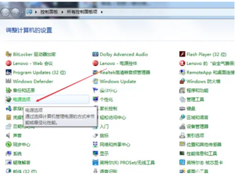 5、點擊“電源選項”就可以。