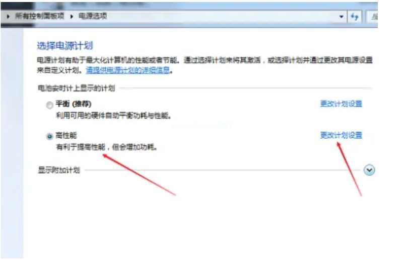 6、勾選“高性能”,再點擊“更改計劃設置”。