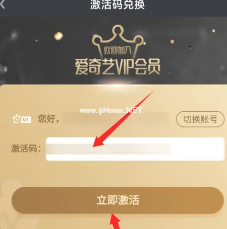 5.輸入愛奇藝vip激活碼,點(diǎn)擊立即激活。