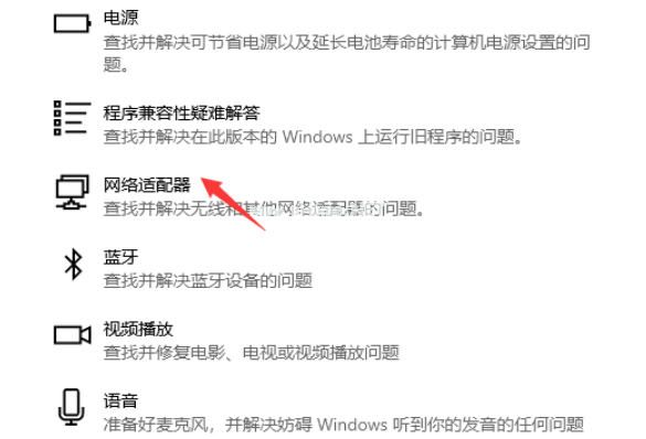 3、點(diǎn)擊“難題和習(xí)題的搜索與解答”,修復(fù)網(wǎng)絡(luò)電源適配器和Internet連接。