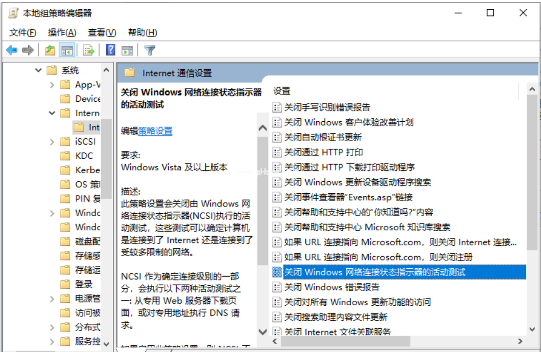 5、開(kāi)啟“關(guān)閉Windows網(wǎng)絡(luò)連接狀態(tài)指示儀的主題活動(dòng)檢測(cè)”。