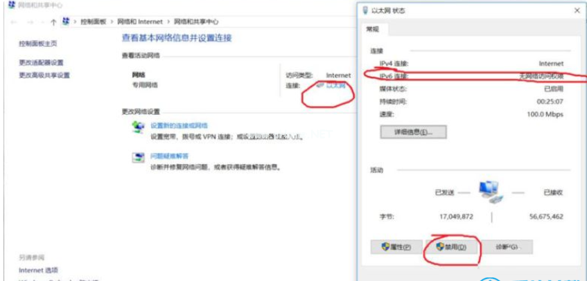 6、點(diǎn)擊連接的以太網(wǎng)接口,點(diǎn)擊禁用隨后再啟用。