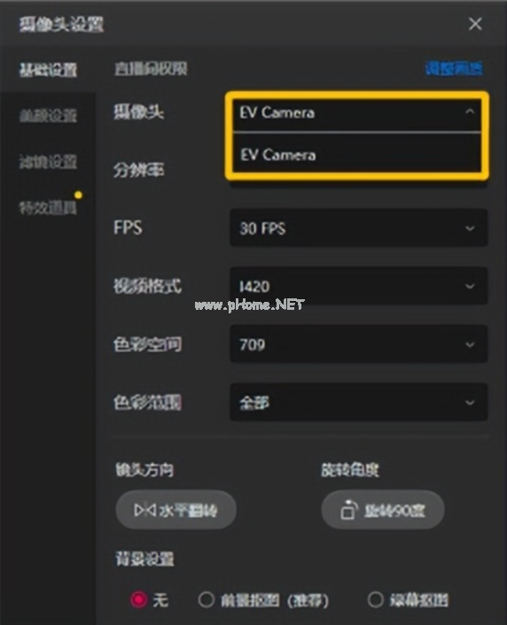 3、選擇EV Camera,即可將EV虛擬攝像頭嵌入到抖音直播界面。