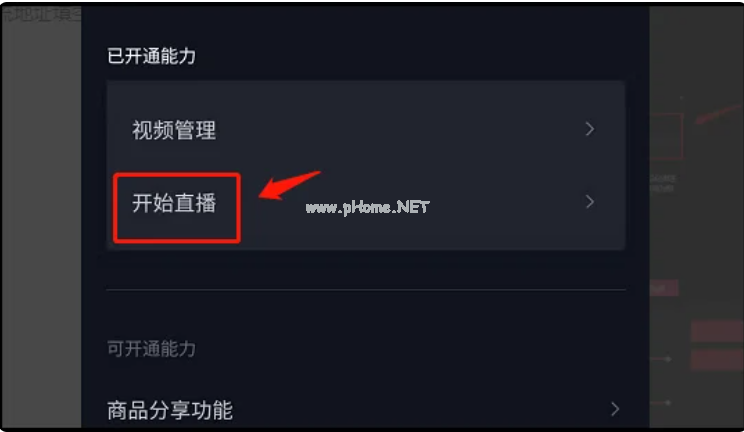 3、在已開通能力列表下點擊“開始直播”,進入直播界面。