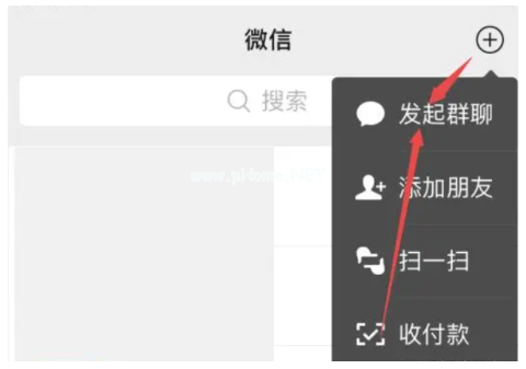 2、點(diǎn)擊出現(xiàn)選項(xiàng)中的“發(fā)起群聊”。