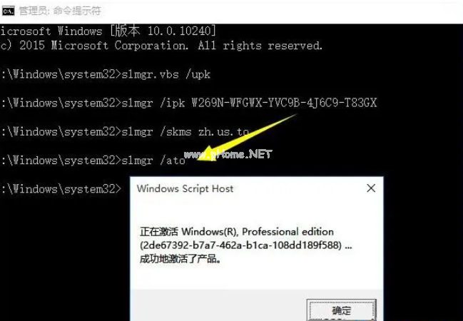 4、最后執(zhí)行命令slmgr /ato,提示成功地激活了產(chǎn)品。
