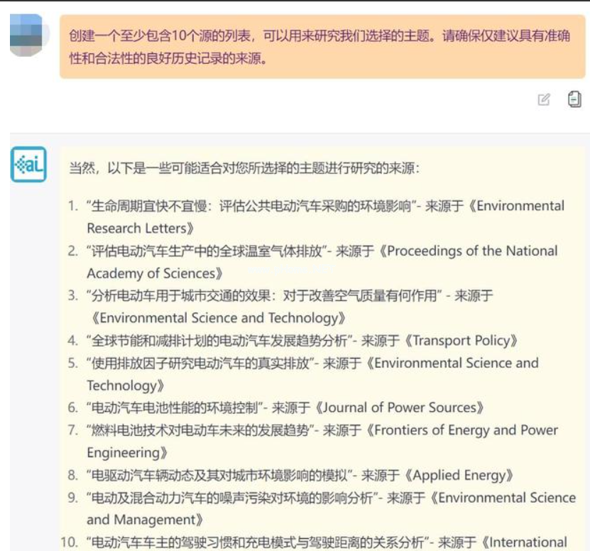 “創(chuàng)建一個(gè)至少包含10個(gè)源的列表,可以用來研究我們選擇的主題。請(qǐng)確保僅建議具有準(zhǔn)確性和合法性的良好歷史記錄的來源?!?/p>