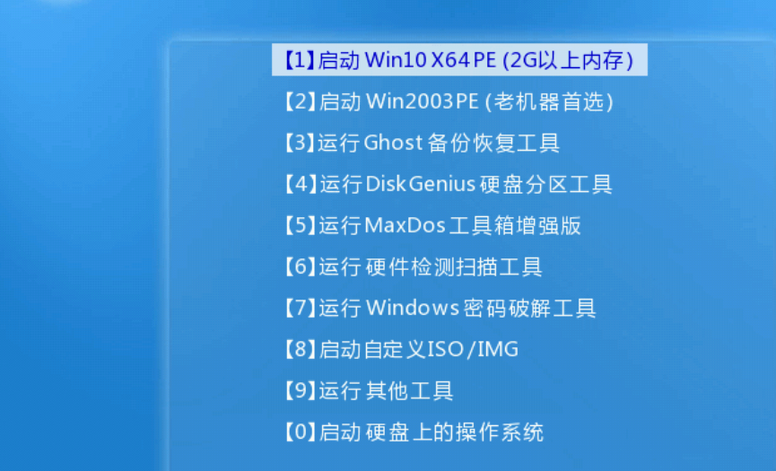 9.進入pe系統(tǒng)主頁面后,選擇“1”進入系統(tǒng)中按照提示完成一系列安裝步驟即可完成安裝。