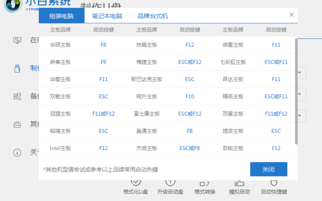 7.不知道啟動項熱鍵的也可以點擊快捷鍵大全查看。